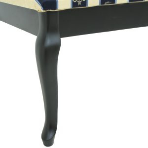 Низкая цена на популярный товар «Банкетка в прихожую с ящиком и сиденьем Ретро венге, ткань синяя полоса» на фирменном мебельном сайте m-m-mebel.ru
