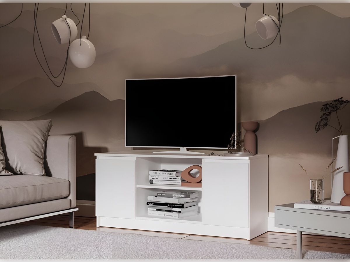 Низкая цена на популярный товар «Белая тумба под телевизор в гостиную напольная | ТВ тумба | Подставка под телевизор Консоль | Тумбочка в прихожую МТВ 1200.1 (МП/3) мори» на онлайн витрине m-m-mebel.ru