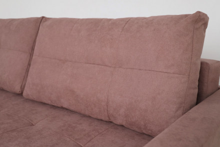 | Состав | ЛДСП 16 мм; Кромка ПВХ – 0,4 мм; Подушки – крошка ППУ, холлофайбер; ППУ; Система трансформации – Еврокнижка; Механизм – Тик-так; Независимый пружинный блок; Каркас – металлокаркас; Ящик для хранения; Брус хвойных пород; Ткань – велюр; Опоры – металл (черный). |