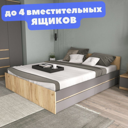Низкая цена на популярный товар «Двуспальная кровать 160 200 с выдвижными Ящиками для хранения белья КР-56 х1600 sity ЛДСП графит / дуб крафт золотой» в официальном интернет-магазине m-m-mebel.ru