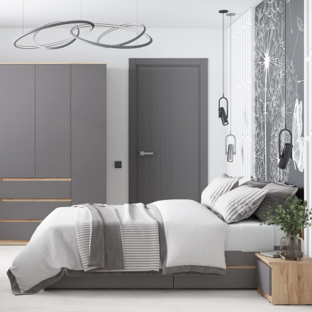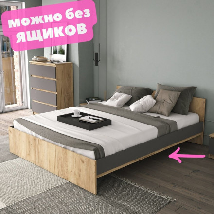 Размер спального места 160х200 см обеспечит простор и удобство для двоих. Кровать изготовлена из качественного ЛДСП, что гарантирует ее долговечность и надежность. Стильный дизайн в цвете графит / дуб крафт золотой добавит элегантности Вашей спальне.
