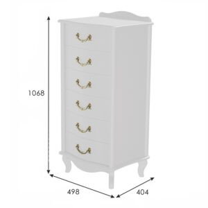 Узкий комод Джульетта – незаменимый предмет мебели для хранения маленьких вещей. В 6 ящиков высокого комода поместится множество одежды.