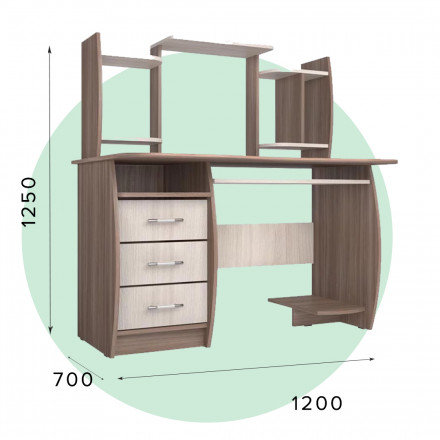 - Многофункциональность: Полки, ящики и тумба обеспечивают место для хранения документов, канцелярских принадлежностей, книг и других необходимых вещей.