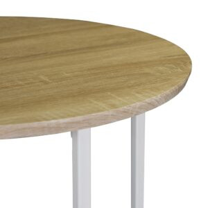 Настольная полочка обладает приятным, природным оттенком и передаёт текстуру дерева. Благодаря необычной, перевёрнутой кромке круглая столешница выглядит утончённо.
