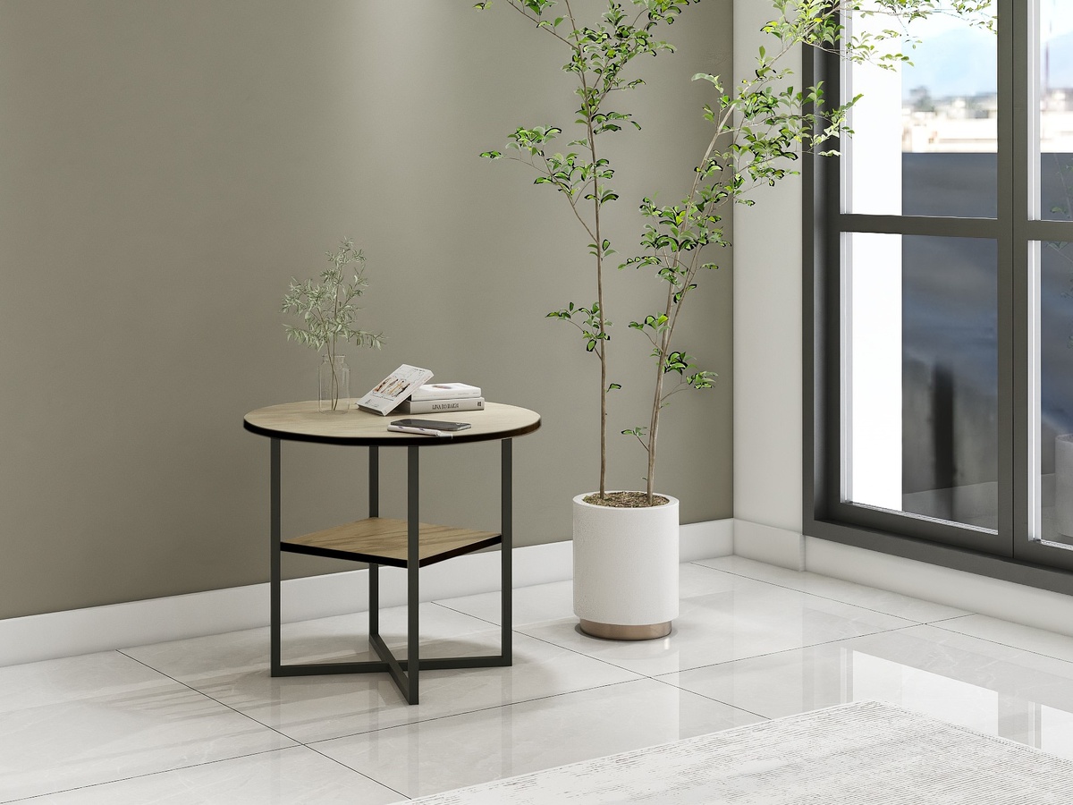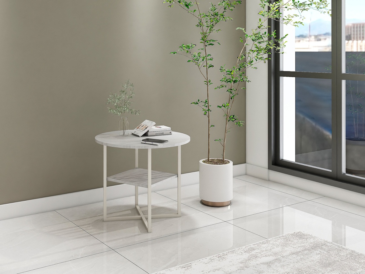 Низкая цена на популярный товар «Стол журнальный низкий круглый | Кофейный столик | Придиванный столик белый ЛОФТ bergen 15 (винтерберг)» на официальном e-commerce маркете m-m-mebel.ru