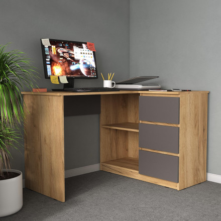 Низкая цена на популярный товар «Угловой письменный стол с тумбой и ящиками ЛОФТ СП-16 СИТИ ЛДСП Графит / дуб Крафт золотой» на фирменном мебельном сайте m-m-mebel.ru